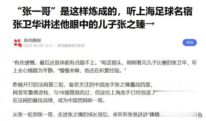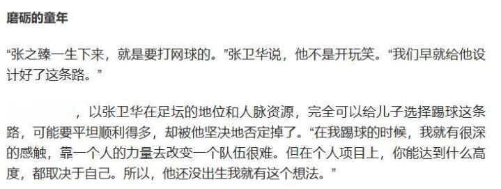 过去张卫华不顾身边东谈主的不明,坚决不让犬子张之臻去踢足球,还为他早早采取网球谈路。