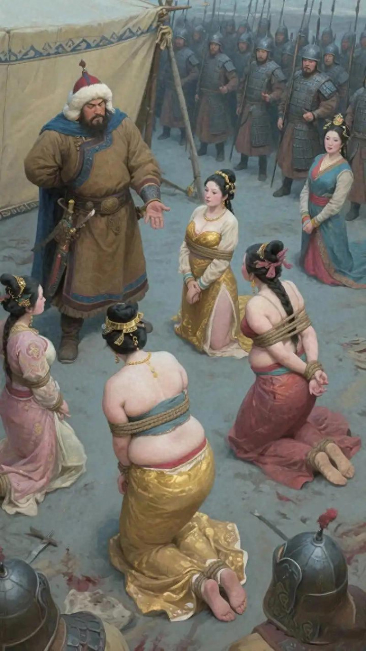 公元1233年,蒙古灭金时,金朝将领崔立献汴京城战胜蒙古,并将那些出逃的金朝官员的妻女关押在天牢,每天挑选三五个长相漂亮的,躬行审讯。说是审讯,其实是奸污,史载:“(崔)立性淫狡……择有色者,日乱数东说念主,犹若不及。”他还主动将金国太后、皇后、宗室等五百余东说念主押解蒙古。这些皇室俘虏,女性齐成玩具,男性则任东说念主砍杀。